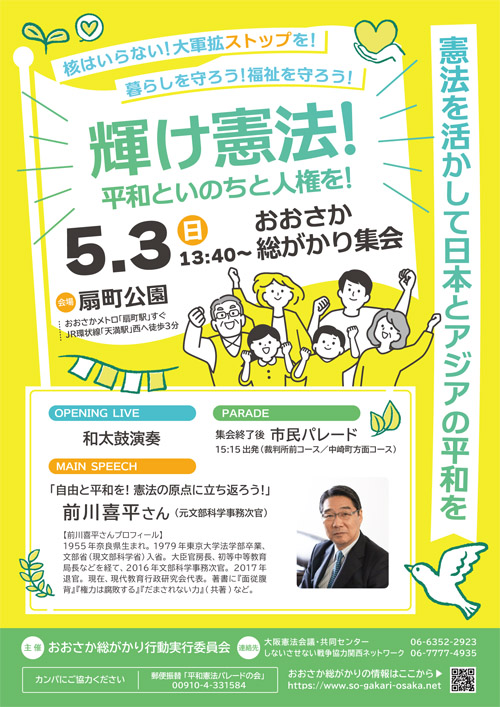◎安倍9条改憲許さない5.3おおさか総がかり集会